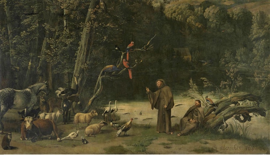 With animals, extolled their innocence,