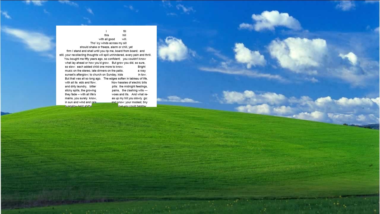 Thank you, Evan, for creatively superimposing my “house” onto that green hill in the photograph. Very nice!