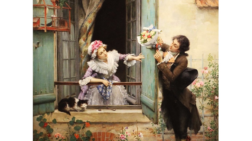 In Joseph S. Salemi’s valentine “To a Girl Named Olivia,” there is a necessary turning away, as in Petrarch’s and Sidney’s poems. The poet does not turn away from looking at other women, but from watching his own implicit solitude. There is the religious touch of making Olivia’s face his icon, an image of someone worthy of worship. He also makes her voice prayer to be kept in his mind. In the religious context of the line, this suggests intercessory prayer that Olivia might make for him. In the love context of the poem, it suggests words that she has spoken or might speak to give him hope of love. Or it could represent hope that she will be the first to break the mutual reticence in which their two selves are wound.
