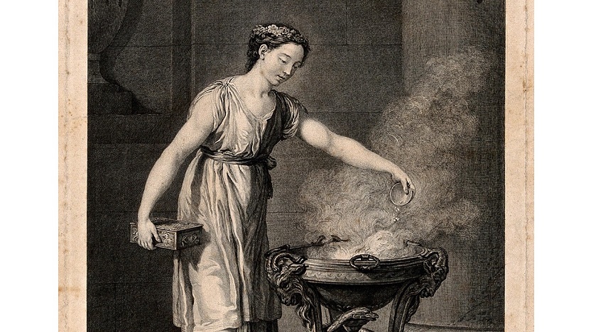 When this answer was reported to Periander, he decided to make a great sacrifice and offering to satisfy the restless spirit. He invited a group of women of Corinth to witness some spectacle in a temple, and when they were together, he surrounded them with his guards, seized them, stripped them of most of their clothing, and then let them go free. The clothes thus taken were then all solemnly burned, as an offering to the ghost of Melissa.