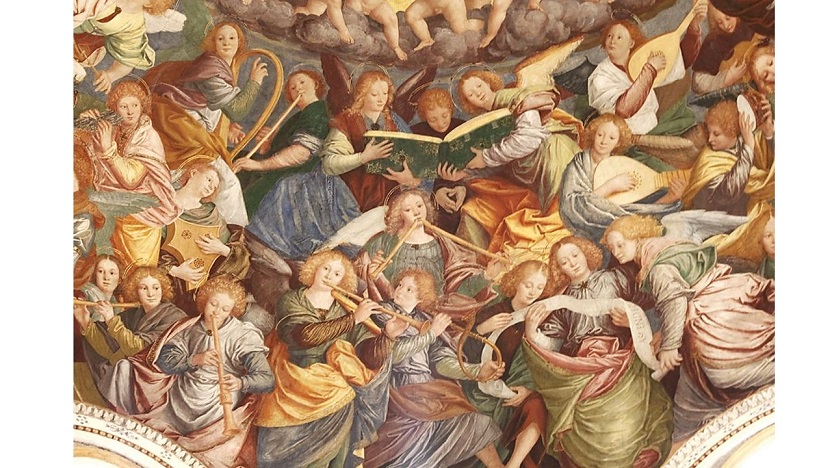 As angel choirs with joy give voice