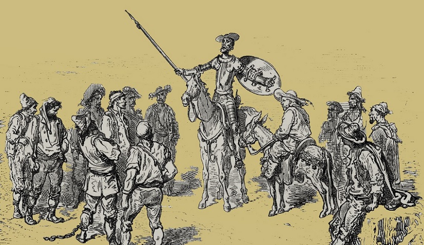 Second, go to the bottom of the below excerpt and first read the biography of Miguel Cervantes, which shows how he was in fact a true gentleman of chivalry in his life. Once the proper context is given (implying that chivalry is essentially awesome, but of course you can’t take anything to an extreme either) then I believe that a “Let the hilarity begin!” is in order and Don Quixote can properly ride forth on a path of ridiculous madcap adventures. Enjoy!