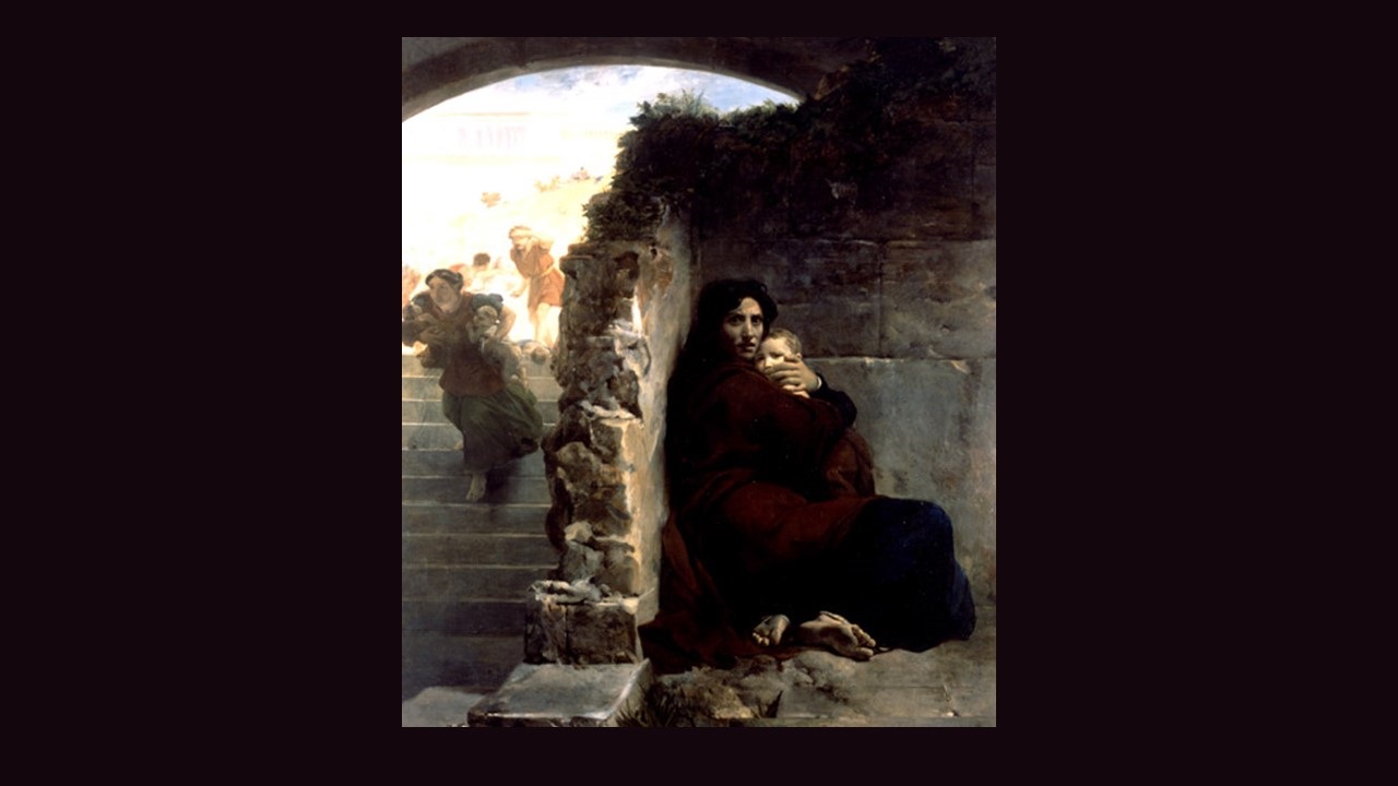 Thank you for this vivid response to Cogniet’s painting, Ms. Parker. In the milieu of rhyme at SCP your blank verse seems to evoke the chaos of the event. Your alluding to Jeremiah in the name Rachel is appropriate and tragic: the disaster had occurred before and is recurring now on an almost unimaginable scale, not through the order of one, but a conspiracy of rulers and vassals. (Let me stray momentarily; do you happen to know the great Clemens motet “Vox in Rama? This is a powerful work that should be sung frequently in these days.) The end of your poem seems to reflect Cogniet’s striking use of light in the upper portion of his painting: the sign of hope even as it reveals the approach of death-dealing violence.