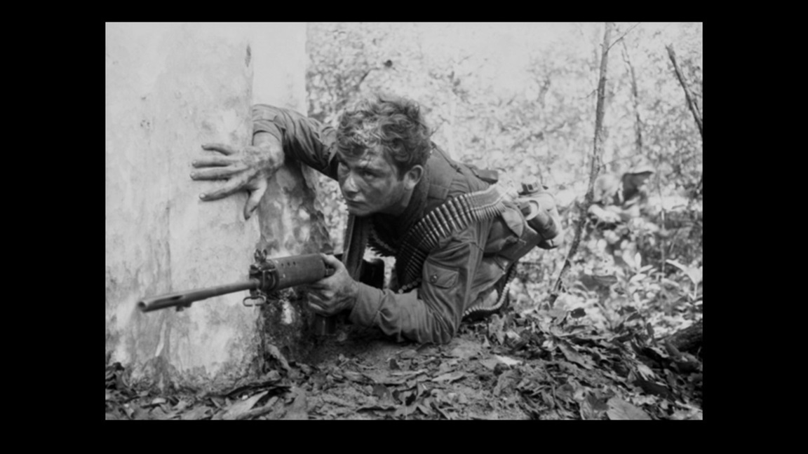 This is a side comment not intended to distract from the poem (although it might). I am interested in the banner photograph by John Alfred Ford? It is striking and captivating. But . . . the soldier is seen as cautious, anxious, as he extends his hand to steady himself as he peeks around the corner of a building. The impression is that he his seeking out the enemy in a combat situation. My question concerns the position of the photographer, who appears to be in the open looking back at the anxiously peering soldier. That leads me to consider the possibility that the photograph was staged. Am I wrong to raise this doubt? If so, why? Just wondering. I have researched his photos and noticed a number of similar shots where he is (for example) positioned in front of a soldier supposedly on patrol crawling through the jungle. Even if posed, they show real soldiers in their war-zone settings.