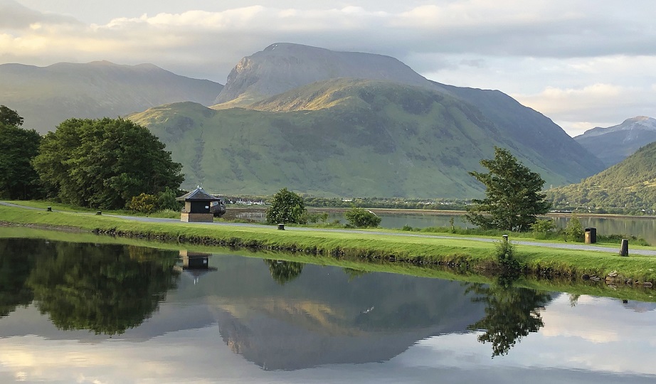 Across the glassy river running green,