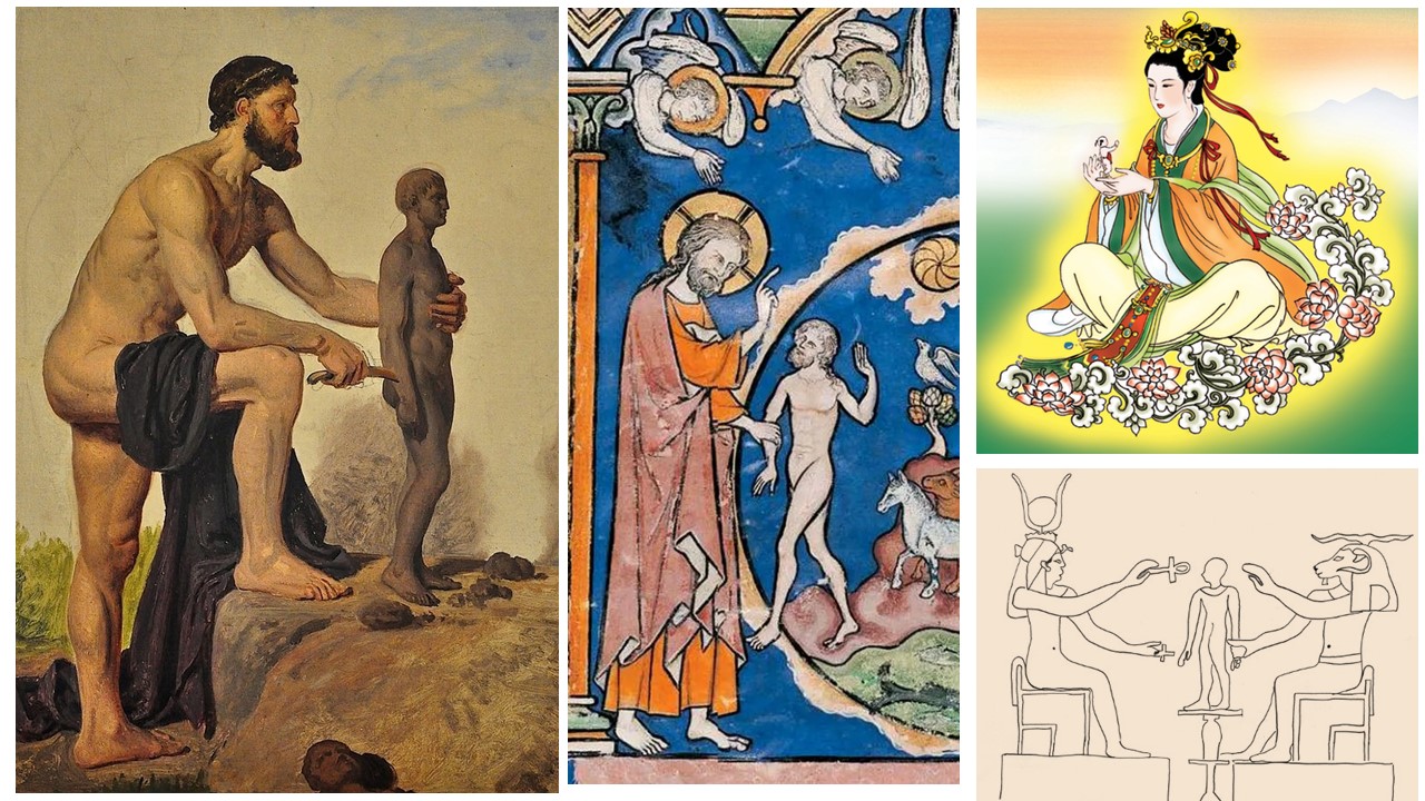 Many creation myths involve violence: the ancient Germans said the world was created when the primal Man killed his twin brother, and made the world from his corpse. The Greeks said that Earth and Sky mated, engendering the Titans and from them the gods, causing two massive wars. Human males were created by Prometheus as a pestilence to annoy the gods, and females were created by the gods to be a torment to men.
