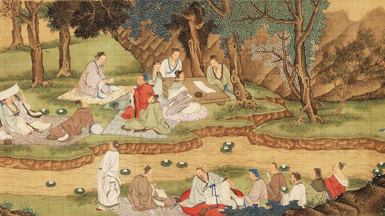 ancient Chinese poets at the Orchid Pavilion depicted by Fan Yi, Qing Dynasty